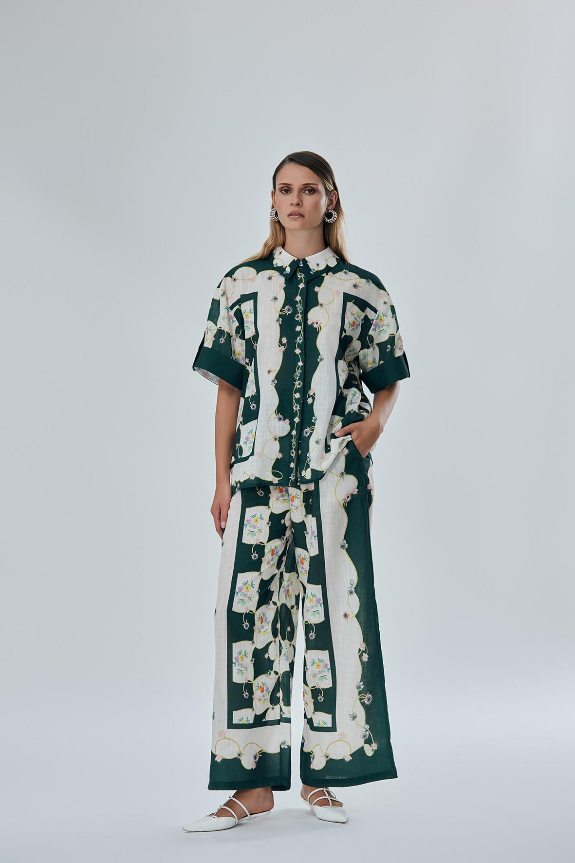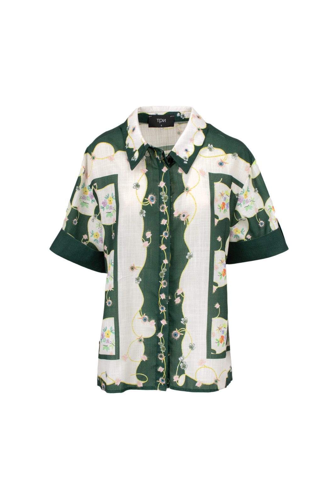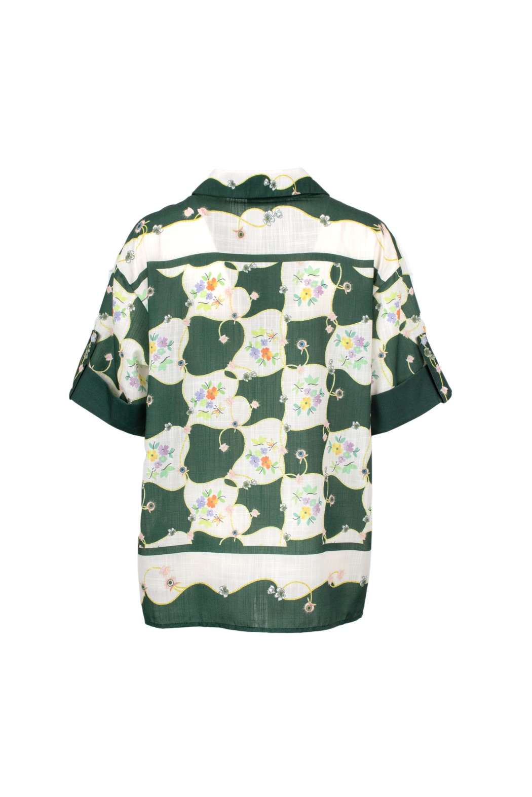Camicia stampa fantasia collo classico, abbottonatura centrale..