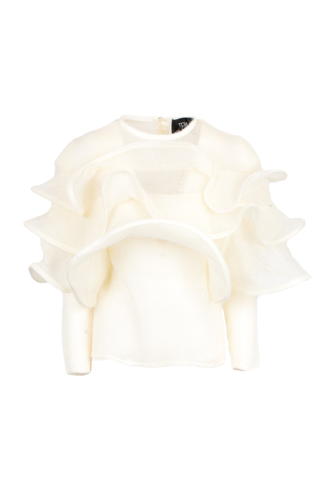 Maglione a maniche lunghe con lavorazione a costine. Scollo a V e chiusura con bottoni. Vestibilità aderente.