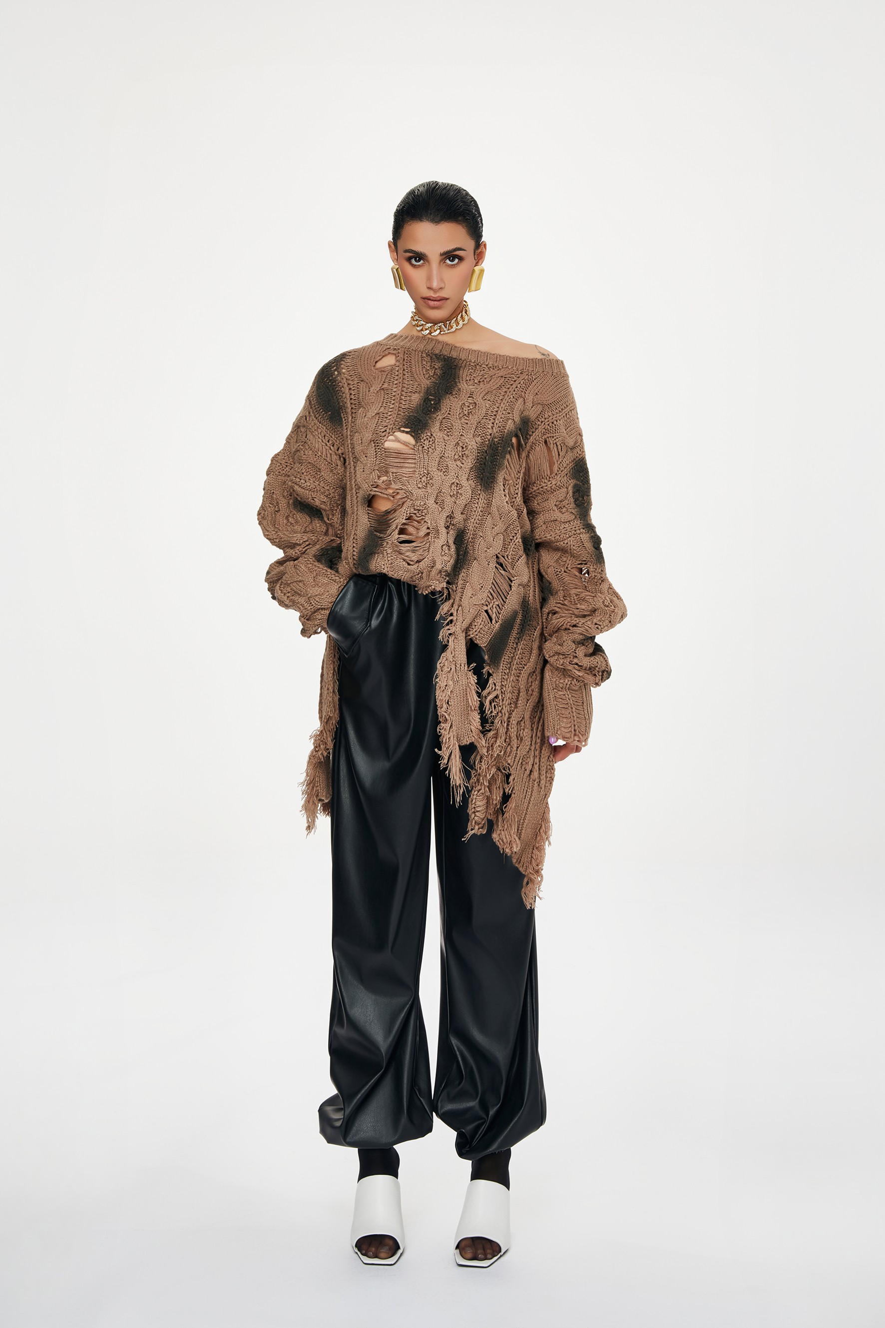 La modella è alta 173 cm e indossa una Tg. S