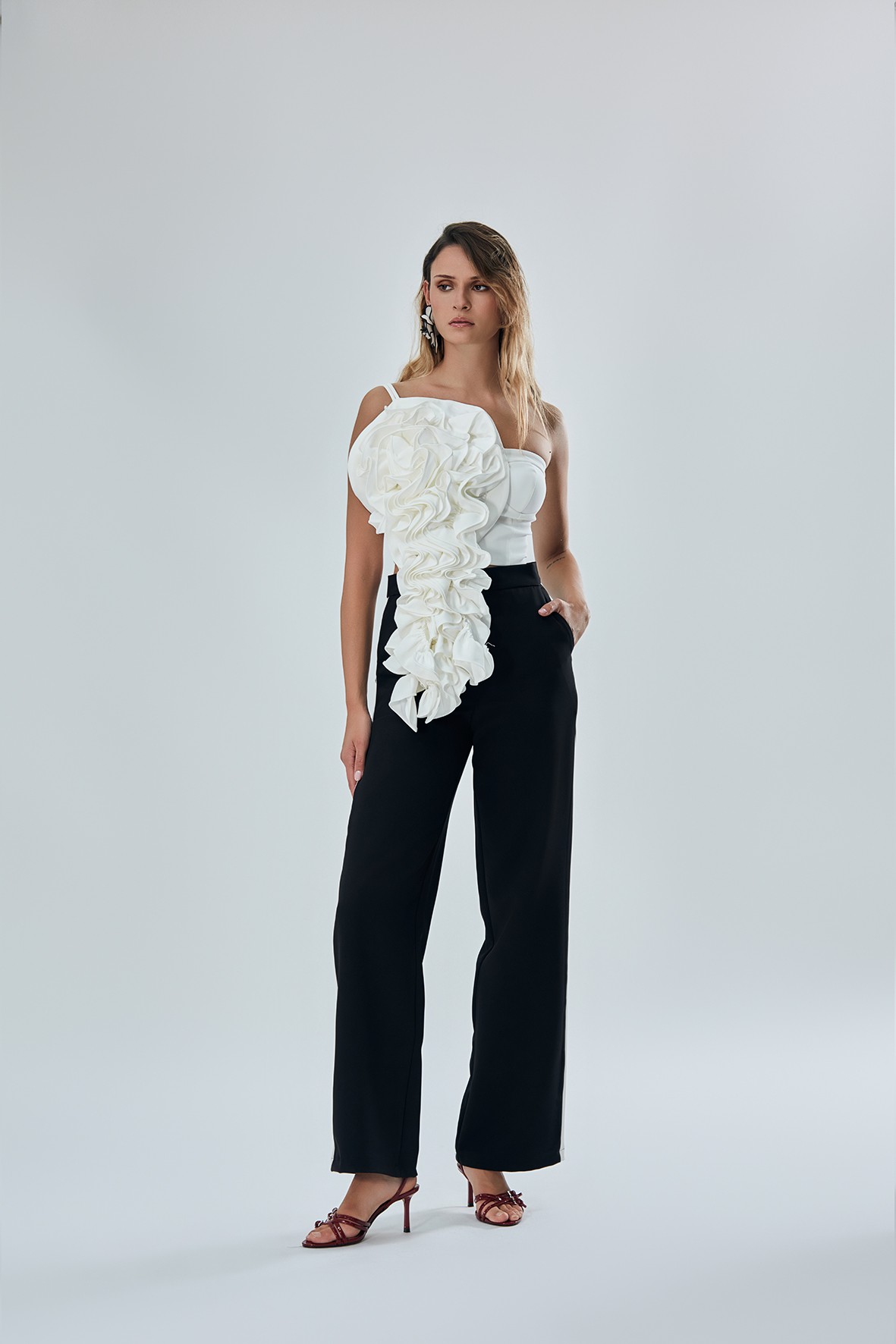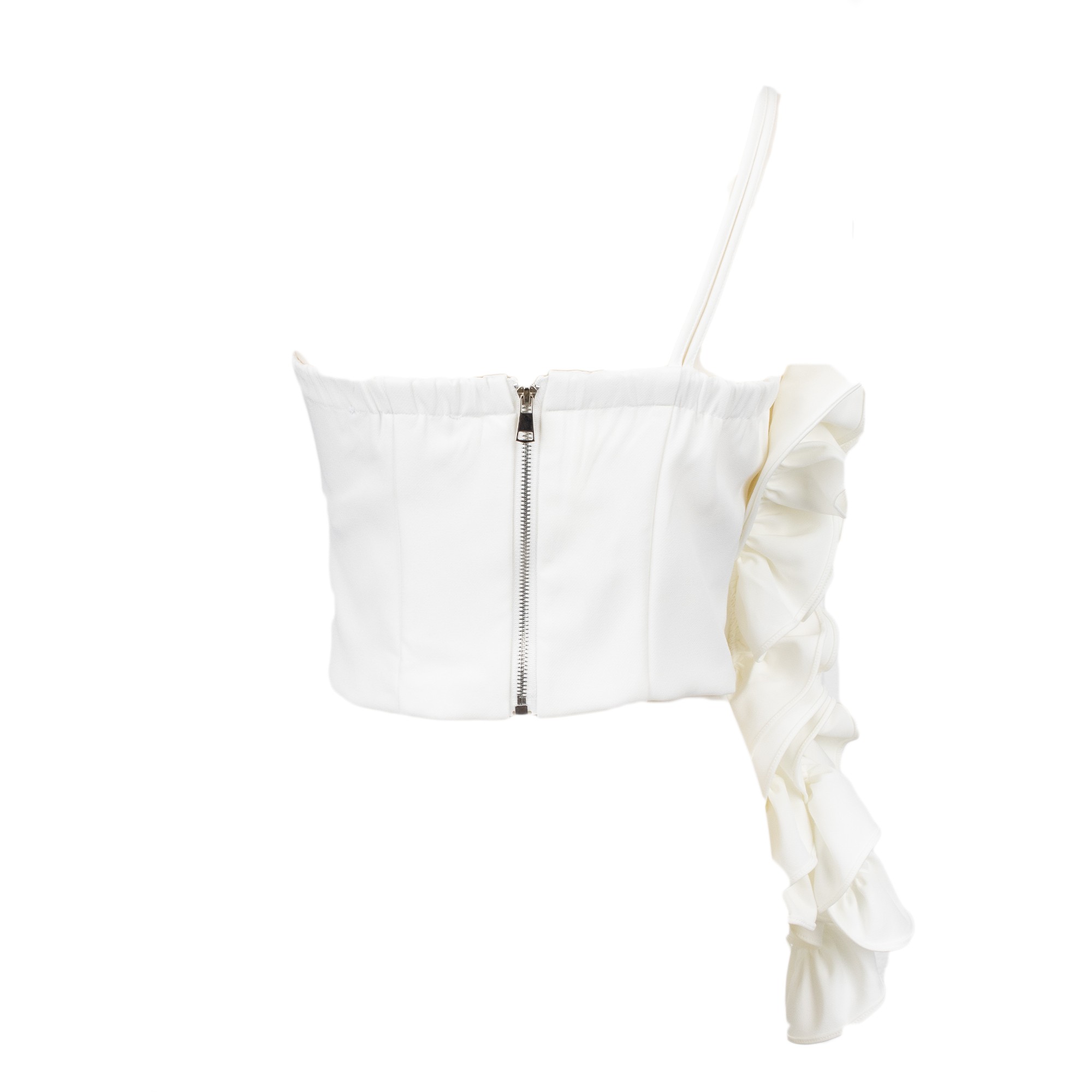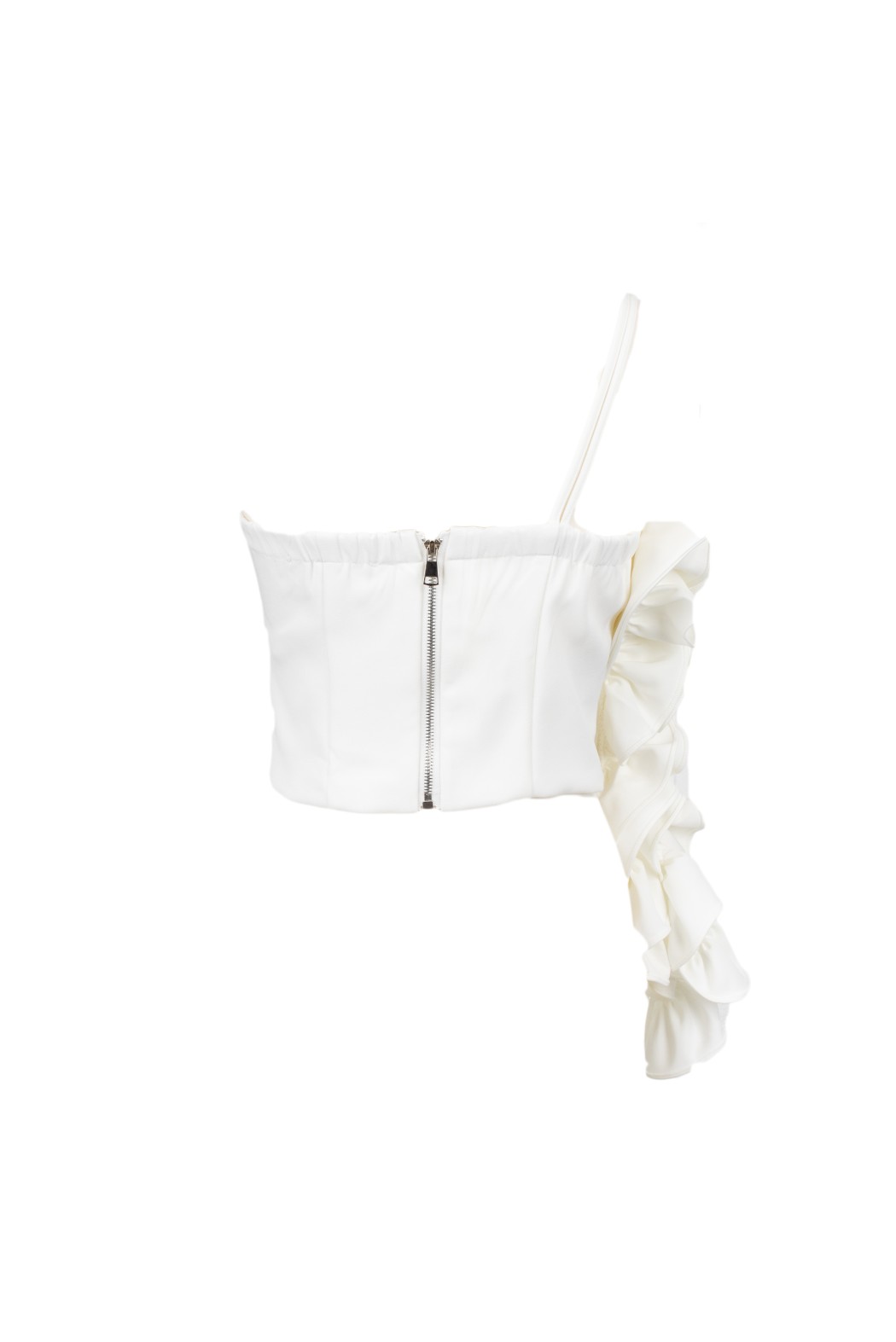 Top mini con grande rouches laterale asimmetrica.